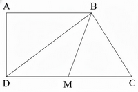 Cho hình thang vuông ABCD, có đáy bé $AB = 20cm$, chiều cao $AD = 15cm$, đáy lớn CD gấp rưỡi đáy bé AB. Trên cạnh CD lấy điểm M sao cho $MC = MD$.