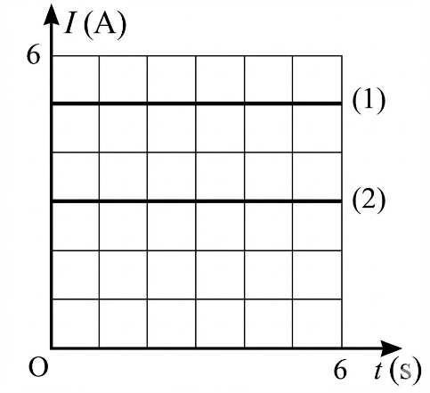 Hai dòng điện không đổi (1) và (2) có đồ thị biểu diễn sự phụ thuộc của cường độ dòng điện theo thời gian như hình vẽ.