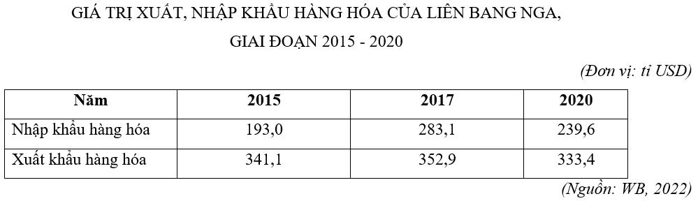 | d) Kim ngạch xuất nhập khẩu của Liên bang Nga năm 2020 tăng 38,9 tỉ USD so với năm 2000. |