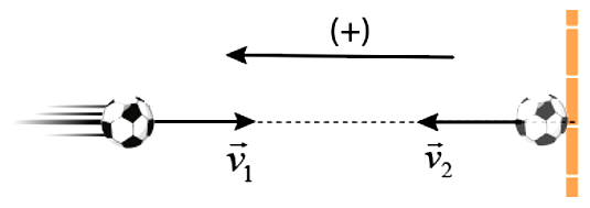 Một quả bóng có khối lượng 300g va chạm vào tường theo phương vuông góc và nảy ngược trở lại với cùng tốc độ. Vận tốc của vật trước va chạm là 5 m/s. Xác định độ biến thiên động lượng của quả bóng theo đơn vị kg.m/s? Chọn chiều dương như hình vẽ.