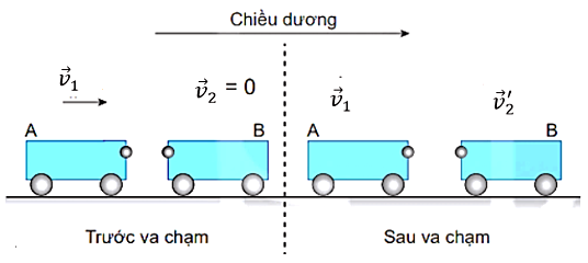 Động lượng của hệ: $\overset{\rightarrow}{p} = {\overset{\rightarrow}{p}}_{1} + {\overset{\rightarrow}{p}}_{2}$