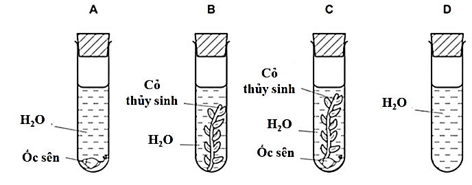 Bốn ống nghiệm được thiết lập như hình dưới đây và để dưới ánh sáng mặt trời đầy