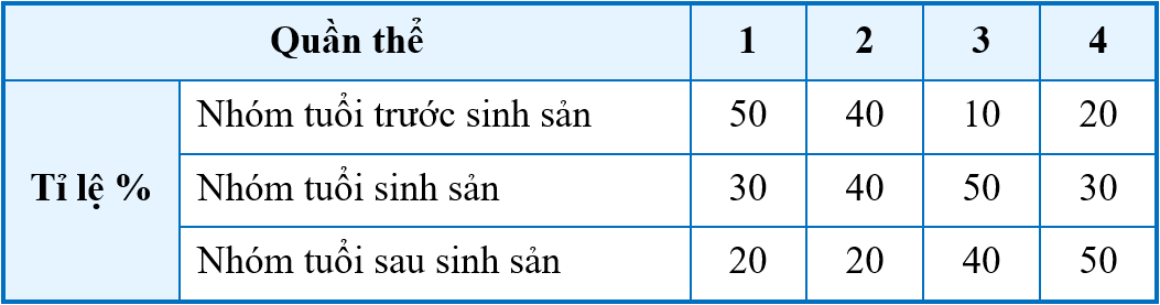 Dưới đây là cấu trúc tuổi của các quần thể khác nhau thuộc cùng 1 loài: