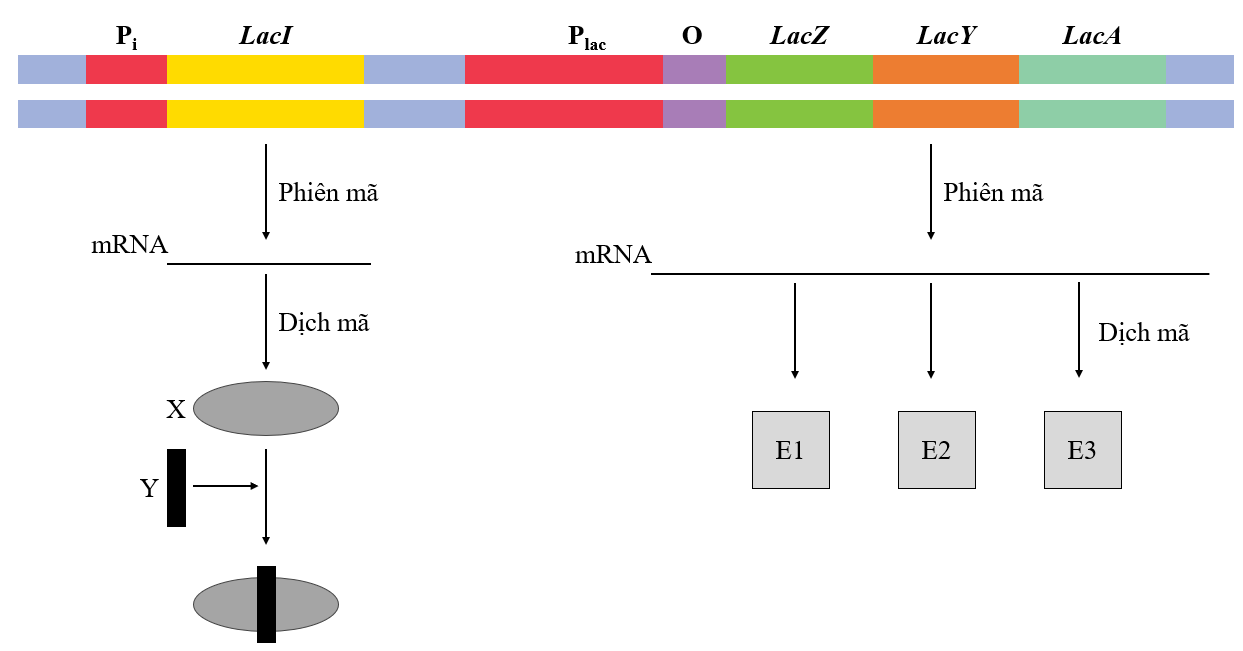 Hình sau đây mô tả hoạt động của Operon Lac ở vi khuẩn E.coli trong môi trường nuôi cấy. Phân