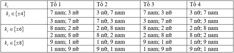 Hiệu số giữa nam và nữ của tổ $i$ là: $k_{i} = x_{i} - (10 - x_{i}) = 2x_{i} - 10$.