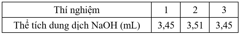 Lặp lại bước 2 thêm hai lần nữa. Kết quả chuẩn độ được ghi ở bảng sau: