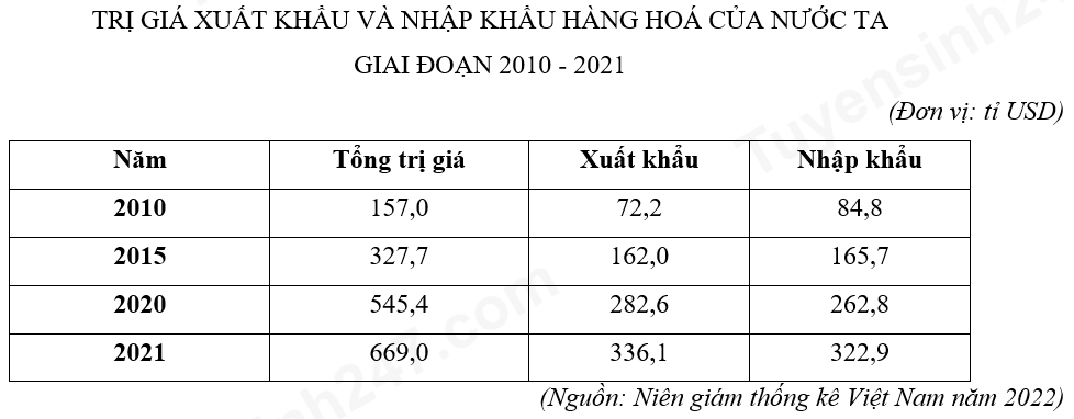 Cho bảng số liệu:Cho biết nhận xét nào sau đây