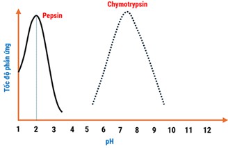 | b) Pepsin hoạt động tốt nhất ở pH = 2. | ||