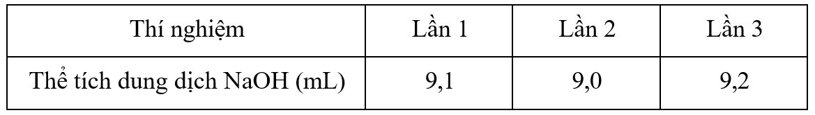 Trong phòng thí nghiệm, học sinh tiến hành chuẩn độ dung dịch NaOH chưa biết chính xác nồng
