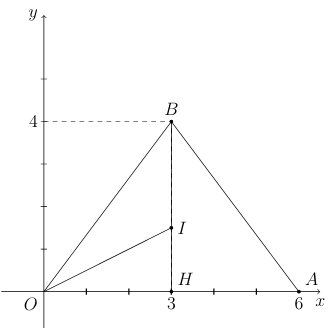 Kẻ đường phân giác góc $\angle BOA$ cắt $BH$ tại $I$