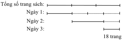 Nhân “Ngày hội đọc sách” bạn Lan đã tham gia đọc một cuốn sách. Ngày 1 Lan đọc được số trang bằng với $\dfrac{1}{3}$ tổng số trang của quyển sách. Ngày thứ 2 Lan đọc $\dfrac{2}{3}$ số trang sách còn lại. Ngày thứ 3 Lan đọc hết 18 trang sách còn lại. Hỏi cuốn sách đó dày bao nhiêu trang?