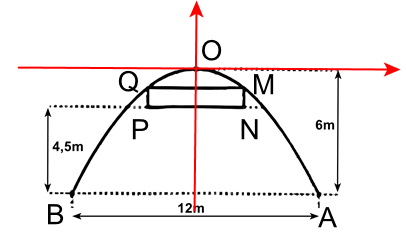 Gắn hệ trục toạ độ, xác định phương trình parabo, gọi hình chữ nhật MNPQ tính toạ độ theo tham số từ đó lập phương trình diện tích và tìm GTLN.