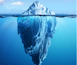 Một tảng băng nước ngọt có nhiệt độ $t = - 2,0^{0}\text{C}$ được tách ra từ mảng đất liền, rơi xuống đại dương, nổi trên đại dương (minh họa như hình bên) với thể tích của phần nổi trên mặt nước mặn của đại dương ước tính bằng $V_{\text{n}} = 80~\text{m}^{3}$. Khối lượng riêng của tảng băng là $\rho = 0,920~\text{g}/\text{cm}^{3}$. Nước mặn của đại dương có khối lượng riêng $\rho_{0} = 1,02~\text{g}/\text{cm}^{3}$ và có nhiệt độ $t_{0} = 2,0^{0}\text{C}$. Nhiệt dung riêng của băng là $c = 2090~\text{J}/\left( {\text{kg}\text{.K}} \right)$, nhiệt dung riêng của nước ngọt là $c_{0} = 4180~\text{J}/\left( {\text{kg}\text{.K}} \right)$. Nhiệt độ nóng chảy của băng là $0^{\text{o}}\text{C}$. Nhiệt nóng chảy riêng của băng là $\lambda = 334.10^{3}~\text{J}/\text{kg}$. Bỏ qua sự mất mát nhiệt ra không khí.