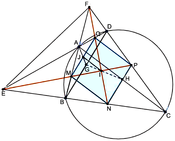 b) Đường phân giác của góc $AEB$ cắt các cạnh $AB$ và $CD$ tương ứng tại $M$ và $P$, đường phân giác của góc $AFD$ cắt các cạnh $CB$ và $DA$ tương ứng tại $N$ và $Q$.