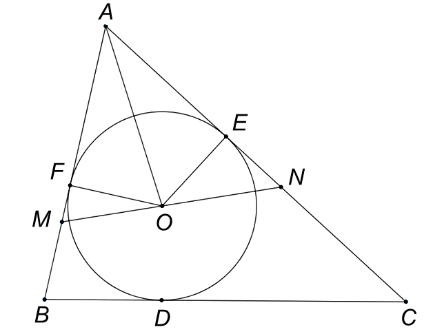 2) Cho đường tròn $\left( {O;R} \right)$ cố định. Tam giác $ABC$ thay đổi ngoại tiếp đường tròn $\left( {O;R} \right)$, có $\angle BAC = 60^{\circ}$. Đường thẳng ($d$) thay đổi và luôn đi qua tâm O , ($d$) cắt các cạnh $AB,AC$ lần lượt tại $\text{M},\text{N}$. Tính giá trị nhỏ nhất của diện tích tam giác $AMN$ theo $R$.