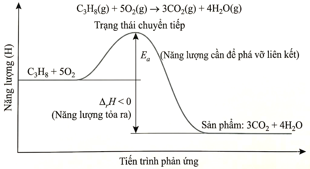 Phản ứng đốt cháy propane là phản ứng tỏa nhiệt ($\Delta H < 0$) vì tổng năng lượng liên kết trong sản phẩm lớn hơn tổng năng lượng liên kết trong chất đầu.