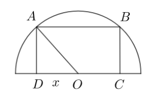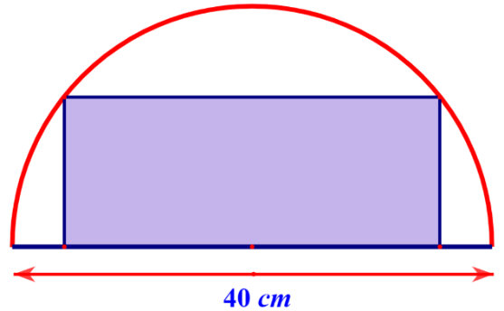 Từ một tấm thép hình bán nguyệt là nửa đường tròn có đường kính 40 cm, người ra muốn cắt ra một tấm thé́p hình chữ nhật (có một cạnh nằm trên đường kính của hình bán nguyệt như hình vẽ bên). Giá trị lớn nhất của diện tích tấm thép có thể đạt được là bao nhiêu $cm^{2}$ (kết quả làm tròn đến hàng đơn vị)?