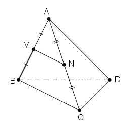 Cho tứ diện $ABCD$ có $M,N$ lần lượt là trung điểm của $AB,AC$. Mặt phẳng nào sau đây song song