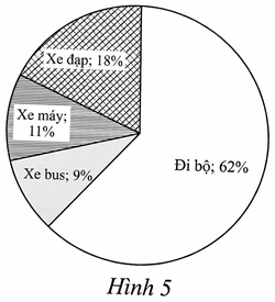 Một trường học đã thống kê phương tiện di chuyển từ nhà đến trường của học sinh vào một ngày trong tuần. Kết quả điều tra được thể hiện ở biểu đồ bên (Hình 5).