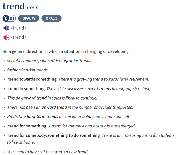 Ta chú ý vào các cụm từ đi kèm với “trend”: