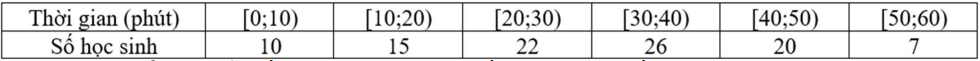 Khảo sát thời gian tập thể dục của một số học sinh thu được mẫu số liệu ghép nhóm như