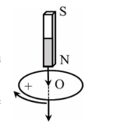 Cho một nam châm thẳng rơi theo phương thẳng đứng qua tâm O của vòng dây dẫn tròn nằm ngang như hình vẽ. Trong quá trình nam châm rơi, trong vòng dây xuất hiện dòng điện cảm ứng có chiều