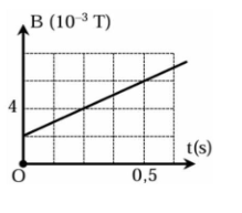 Độ lớn của suất điện động cảm ứng xuất hiện trong khung từ thời điểm $t_{1} = 0$ đến thời điểm $t_{2} = 0,5\text{s}$ là