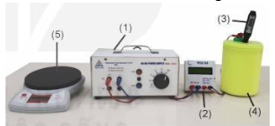 Hình bên dưới là các dụng cụ để đo nhiệt dung riêng của nước. Dụng cụ số (1) là