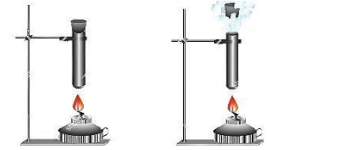 Hơ nóng một khối khí trong ống nghiệm có nút đậy kín (không quá chặt) như hình a và kết quả nút bật ra khỏi ống nghiệm (hình b) Chọn câu sai.