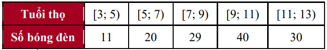 Cho bảng số liệu khảo sát về tuổi thọ (đơn vị: nghìn giờ) của một loại bóng đèn: