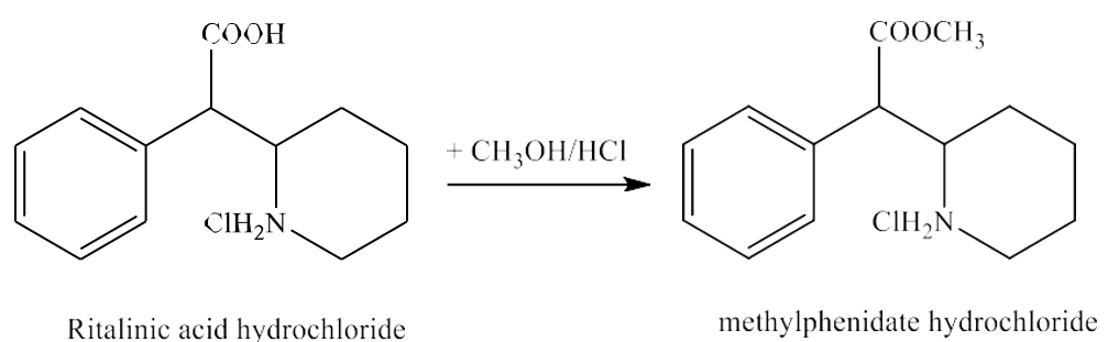 Sơ đồ phản ứng: nritalinic acid hydrochloride = nmethylphenidate hydrochloride⟹ m.