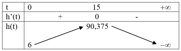 d) Tìm t để $h’(t)$ đạt giá trị lớn nhất, sử dụng giá trị t vừa tìm được tính $h(t)$.