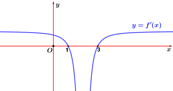 | a) Phương trình $f’(x) = 0$ có hai nghiệm $x = 1$ và $x = 3$. | ||