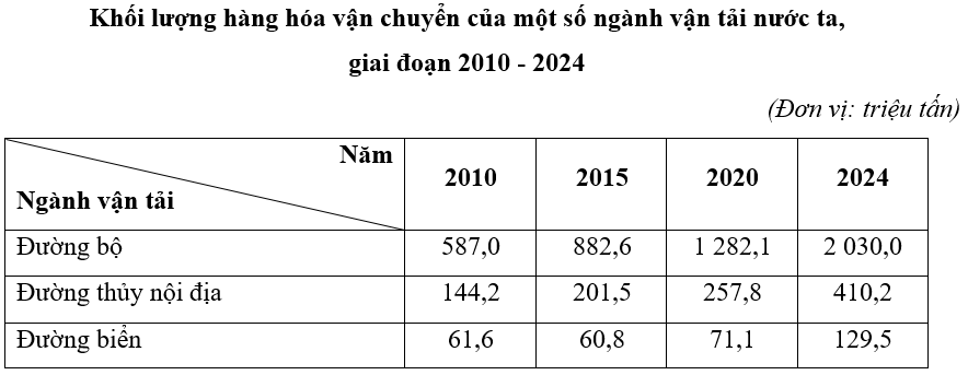 Nhận xét nào sau đây đúng với bảng số liệu trên?