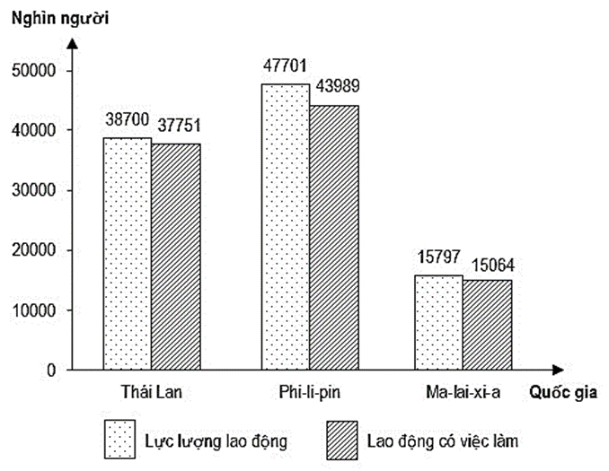 Cho biểu đồ:Lực lượng lao động và lao động có việc làm một số nước Đông Nam Á năm