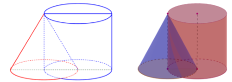 Tìm thể tích phần giao nhau của khối nón $(N)$ và khối trụ $(T)$ biết rằng