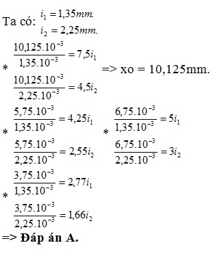 Thí nghiệm giao thoa I âng, thực hiện đồng thời hai bức xạ đơn sắc có khoảng vân lần lượt là 1,35 mm và 2,25 mm. Tại điểm M trên màn cách vân trung tâm một đoạn x0 cả hai bức xạ đều cho vân tối tại đó. Giá trị của x0 có thể là: