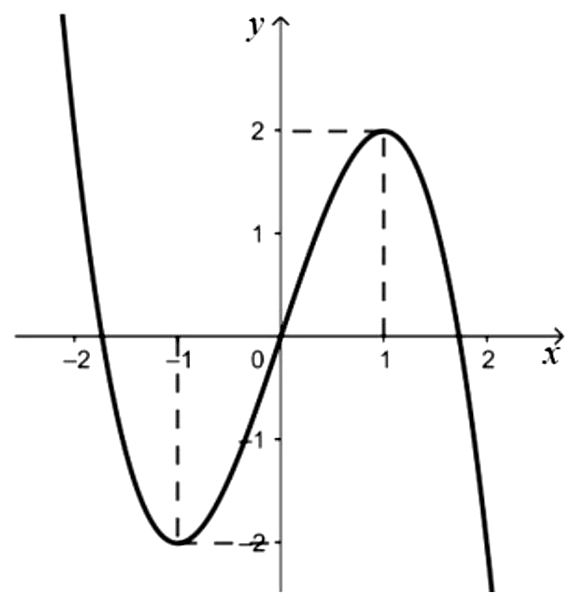 Cho hàm số bậc ba $f(x) = ax^{3} + bx^{2} + cx + d,\left( {a \neq 0} \right)$ liên tục trên $\mathbb{R}$ và có đồ thị như hình vẽ.