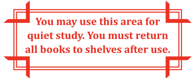 Bạn có thể dùng khu vực này để học trong yên lặng. Bạn phải trả lại tất cả sách sau khi sử dụng.”
