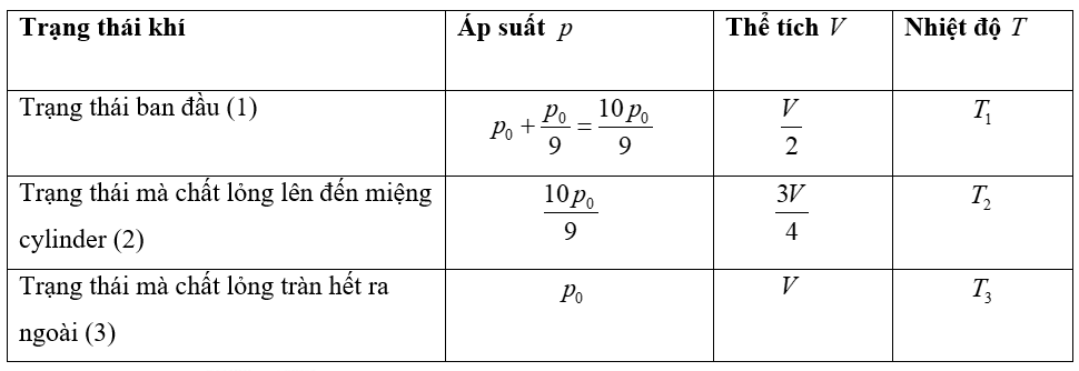 - Tính công của khí thực hiện trong hai giai đoạn: Giai đoạn khí đẩy nước lên đến miệng Cylinder và giai đoạn khí đẩy hết nước ra khỏi Cylinder.