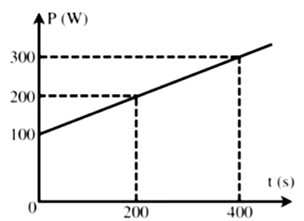 Hai lít nước được đun trong một chiếc bình đun nước có công suất 500 W. Một phần nhiệt tỏa ra môi trường xung quanh. Sự phụ thuộc của công suất tỏa nhiệt ra môi trường theo thời gian đun được biểu diễn trên đồ thị như hình vẽ. Cho nhiệt độ ban đầu của nước là 200C, cho nhiệt dung riêng của nước là c = 4200 J/kg.K. Sau thời gian bao nhiêu giây thì nước trong bình có nhiệt độ $30^{0}\text{C}$? (Kết quả làm tròn đến phần nguyên)