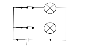 Cho những dụng cụ sau: nguồn điện, hai bóng đèn giống nhau, các công tắc và các dây nối. Hãy vẽ hai sơ đồ mạch điện khác nhau để thắp sáng hai bóng đèn trên. Vẽ mũi tên chỉ chiều dòng điện chạy trong mạch với các sơ đồ trên.