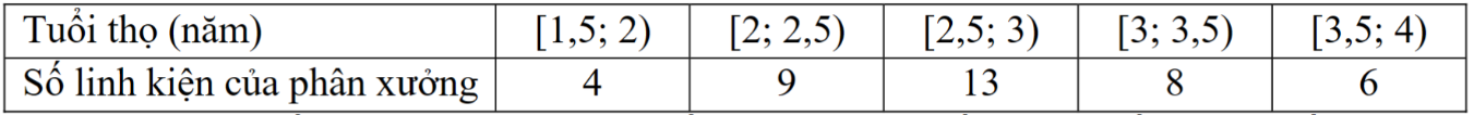 Tuổi thọ của một số linh kiện điện tử được sản xuất bởi một phân xưởng được cho như sau: