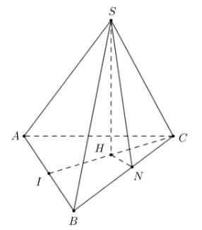 Khi đó $\left( {\left( {SBC} \right),\left( {ABC} \right)} \right) = \left( {SN,HN} \right) = \angle SNH$