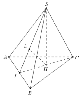 Kẻ $HL\bot SI\,\,\left( {L \in SI} \right)$. Khi đó $HL\bot\left( {SAB} \right)$