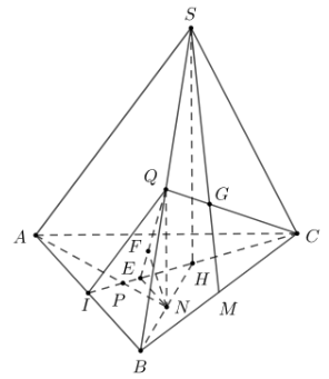 Gọi $CG \cap SB = Q$. Khi đó $d\left( {SA,CG} \right) = d\left( {A,\left( {IQC} \right)} \right)$