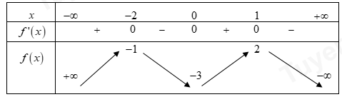 Cho hàm số bậc bốn $y = f(x)$ có bảng biến thiên như hình vẽ dưới đây.