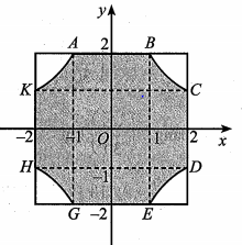 Người ta thiết kế một mẫu gạch lát nền nhà có dạng hình vuông cạnh $4\,\text{dm}\text{.}$Bốn góc viên gạch màu trắng, phần ở giữa màu xanh (Hình 5). Đường viền của phần màu xanh bao gồm bốn đoạn thẳng nằm trên các cạnh hình vuông và bốn đường cong có tính chất: Tích khoảng cách từ một điểm bất kì thuộc đường cong đó đến hai trục đối xứng của viên gạch (hai đường thẳng đi qua tâm viên gạch và lần lượt song song với hai cạnh vuông góc) bằng $2\,\text{dm}^{2}\text{.}$ Hãy cho biết phần màu xanh có diện tích bằng bao nhiêu decimét vuông (làm tròn kết quả đến hàng phần mười)?