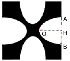 Một hoa văn trang trí được tạo ra từ một miếng bìa mỏng hình vuông cạnh bằng $10$ cm bằng cách khoét đi bốn phần bằng nhau có hình dạng parabol như hình bên. Biết $AB = 5$cm, $OH = 4$ cm. Diện diện tích bề mặt hoa văn đó là bao nhiêu centimet vuông (làm tròn đến hàng thập phân)?
