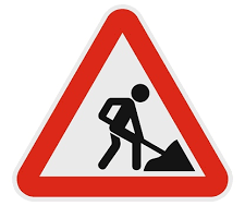 Biển báo là hình tam giác viền đỏ, là biển báo cảnh báo nguy hiểm, bên trong có hình một người đang đào đường, thường là biển báo cảnh báo đường đang thi công.